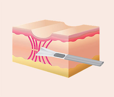 과거 피부 질환 재생 과정에서 잘못 형성된 섬유성 콜라겐 밴드가